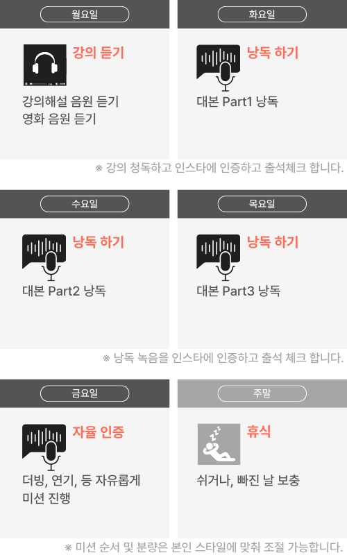 반면에 루틴을 만들고 완주할 계획이라면 낭독 인증 하실 것을 권장해요.