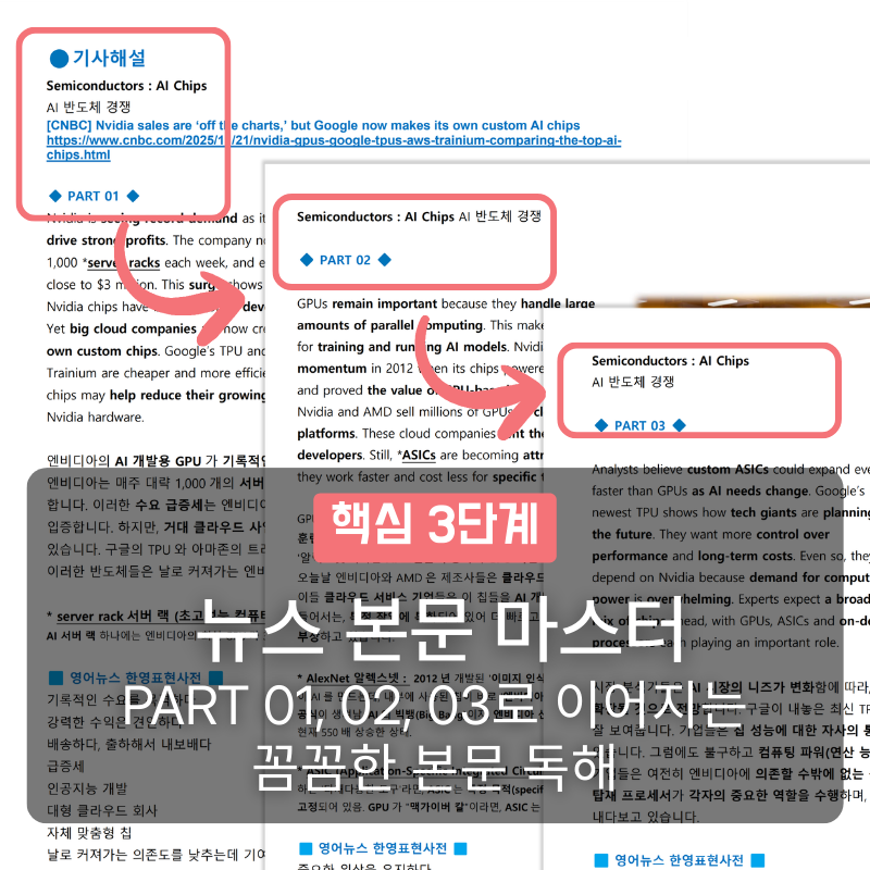 구조 분석과 한영 대조를 통해 뉴스의 모든 핵심 문장과 구문을 완벽하게 체화합니다.