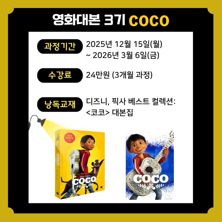 [12/1 모집 시작] 영화대본낭독 과정 (코코)
