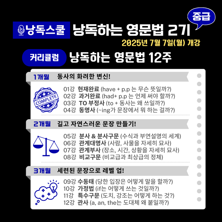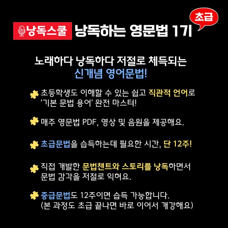[모집마감] 12주동안 노래로 마스터하는 중등영문법! 낭독하는 영문법 초급 1기MD판매대기