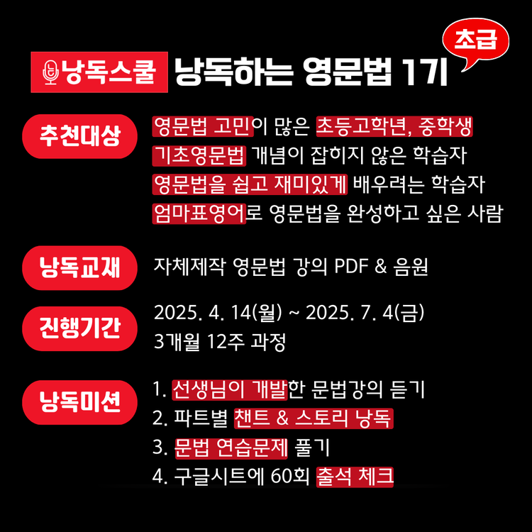 🐰낭독하는 영문법 초급 1기🐰 신규 런칭!