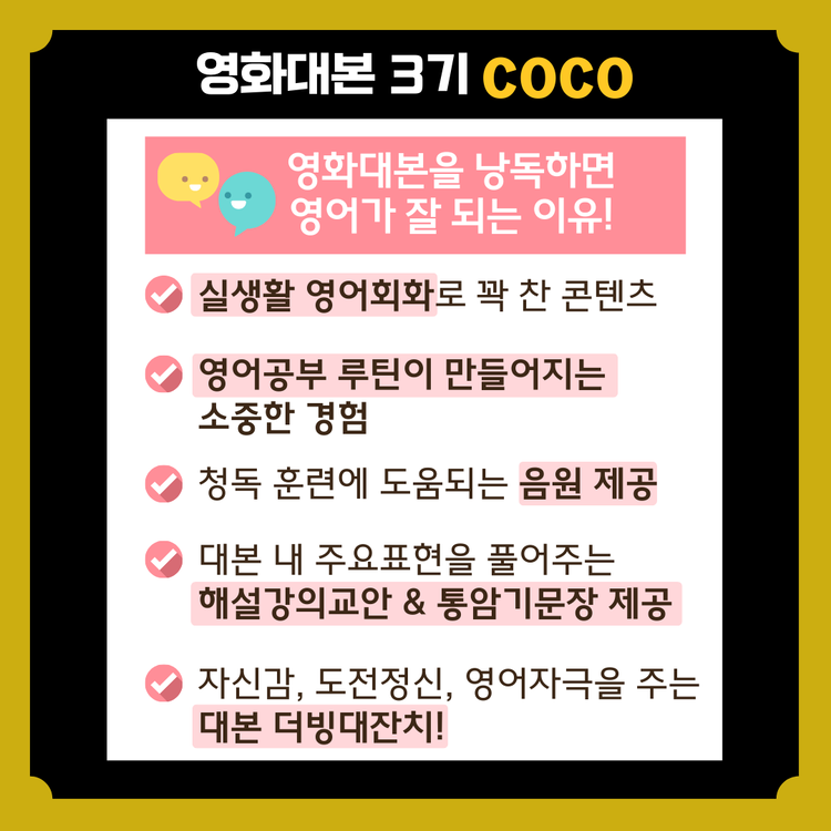 [12/24 모집마감] 영화대본낭독 과정 (코코)BESTMDHOT판매대기